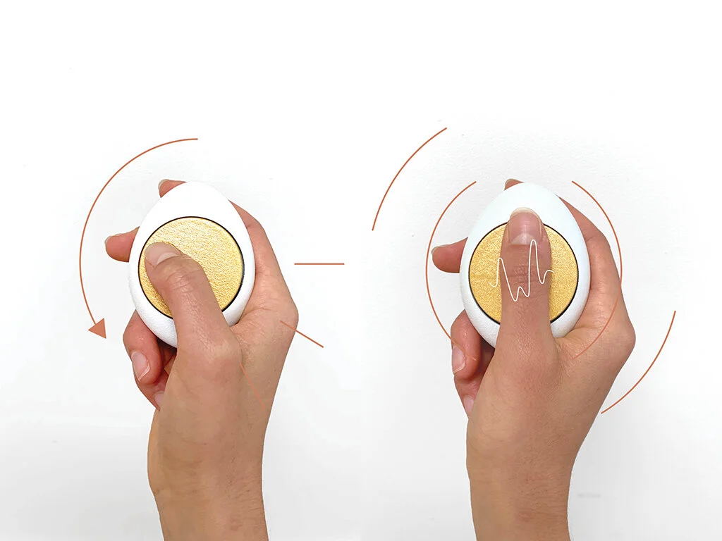 Problem behaviours are logged real time through a dial interaction, which captures the date and time, and sends this data to the companion app. Inspired by calming techniques adopted and prescribed by specialists, the device reads the pulse of the user, and reflects this through vibrations. This aims to calm users by drawing attention to their breathing and encouraging deep breathing exercises.