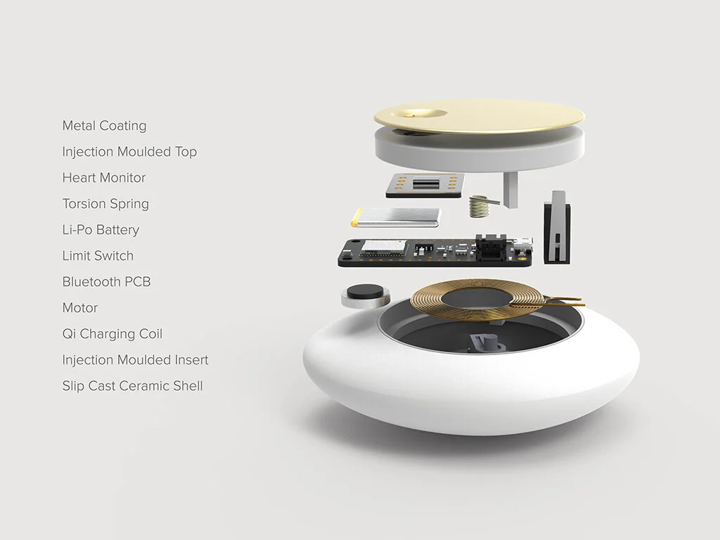 The premise behind Echo's formation was to create a product that's there when you need it and invisible when you don't. As such, the device is no bigger than the palm of a hand, and is easily stowed in a pocket or bag when not in use. The product’s interactions, form, and materiality make it meaningful and emotionally compatible, while its size and ease of use ensure it is unobtrusive in the lives of young adult populations.