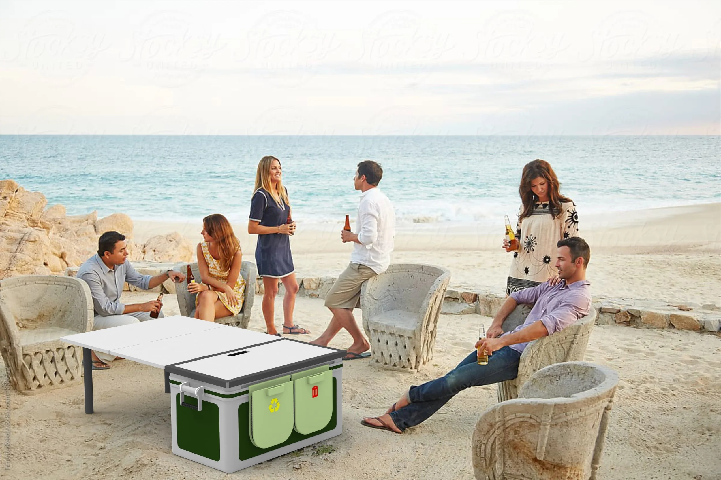 The Esky Table provides a consumer with an easy-to-use, functional camping and outdoor tool that offers a means of keeping the environment clean and also promotes healthy social habits for users.