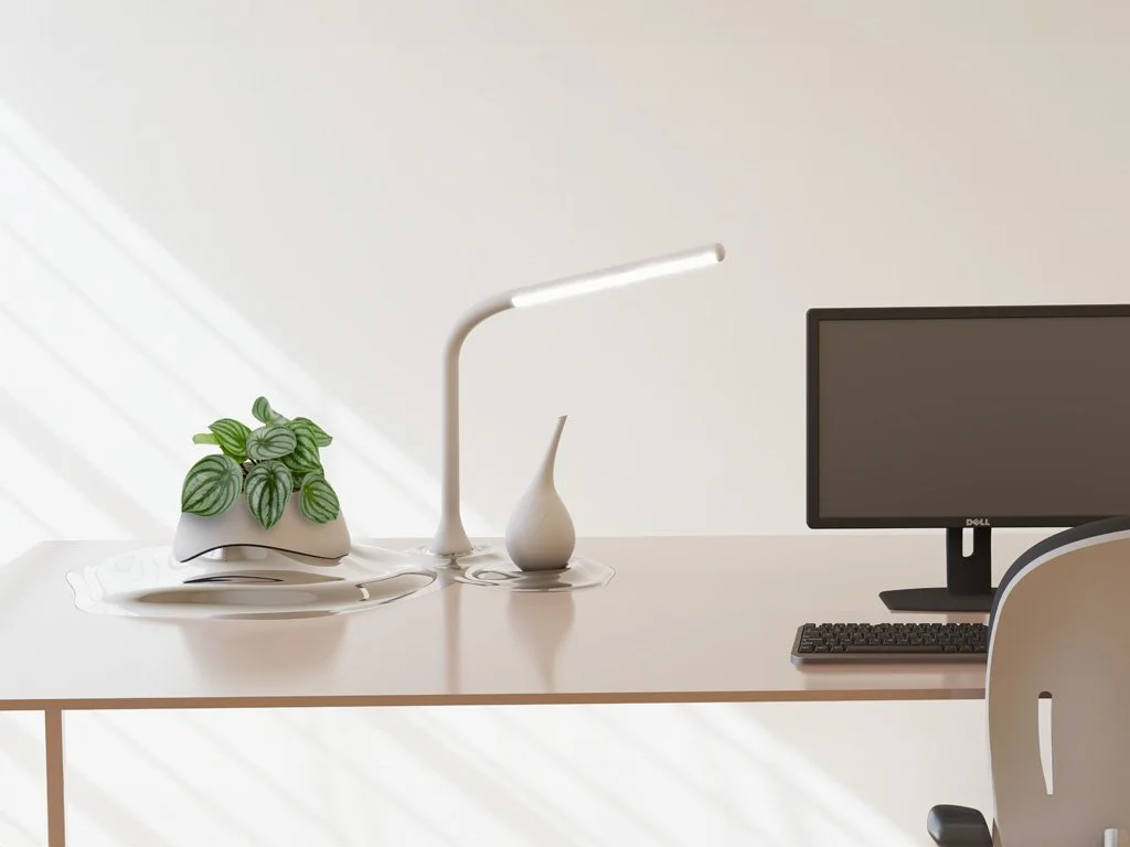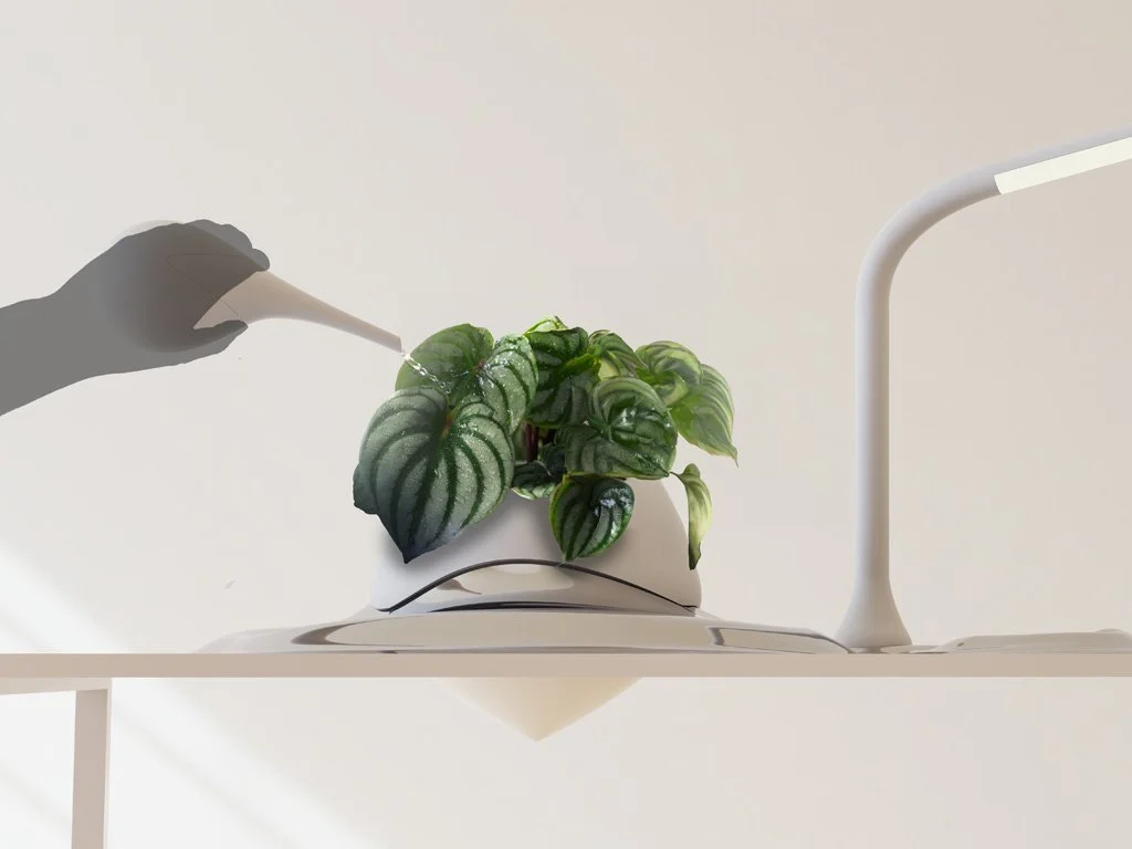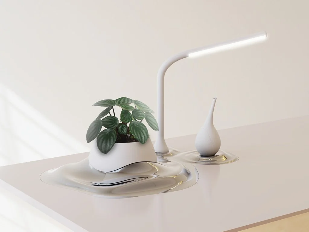 Humans have an intrinsic affiliation with nature known as biophilia (Wilson, 1993), and there are many studies which demonstrate the benefits of exposure to natural and natural-resembling (biomimetic) elements on cognitive and emotional health. Biophilic design has many applications in workplace design, however many existing designs lack a sense of stewardship and active responsibility over the living objects. Equilibrium is a system of desk-integrated products including a planter box, watering can and lamp which catalyse active stewardship for a plant. The integration of a soil moisture sensor and the lamp’s corresponding programmed LED light encourages upkeep of the plant’s welfare in order to maintain the desk ecosystem’s equilibrium. If the plant’s soil moisture is unsatisfactory, the lamp will not reach full brightness indicating the need to water the plant. The design promotes active interaction and care which has been proven to reduce stress (Lee et al., 2015).