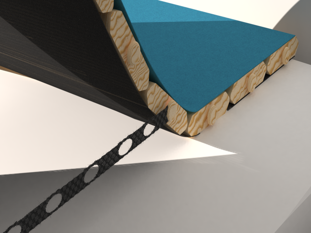 The Rise Attachment is a 3-part modular bedding attachment that allows the user to transform their bedroom into a personal home office. However, it creates distinct physical and mental changes in the space to avoid adverse effects. The product uses a futon, a modular wooden slat element and a table attachment to achieve this. The product remains flat with the futon on top when used for sleeping. When used for work, the slats can be adjusted into a seat through the knobs and nylon straps to suit the user’s posture, and the futon can be rolled and combined with the table attachment to make a worktable. Implementing contrasting colours and forms and visually eliminating associated items and routines to create different mindsets for the different uses of the room, improving the user’s quality of life.