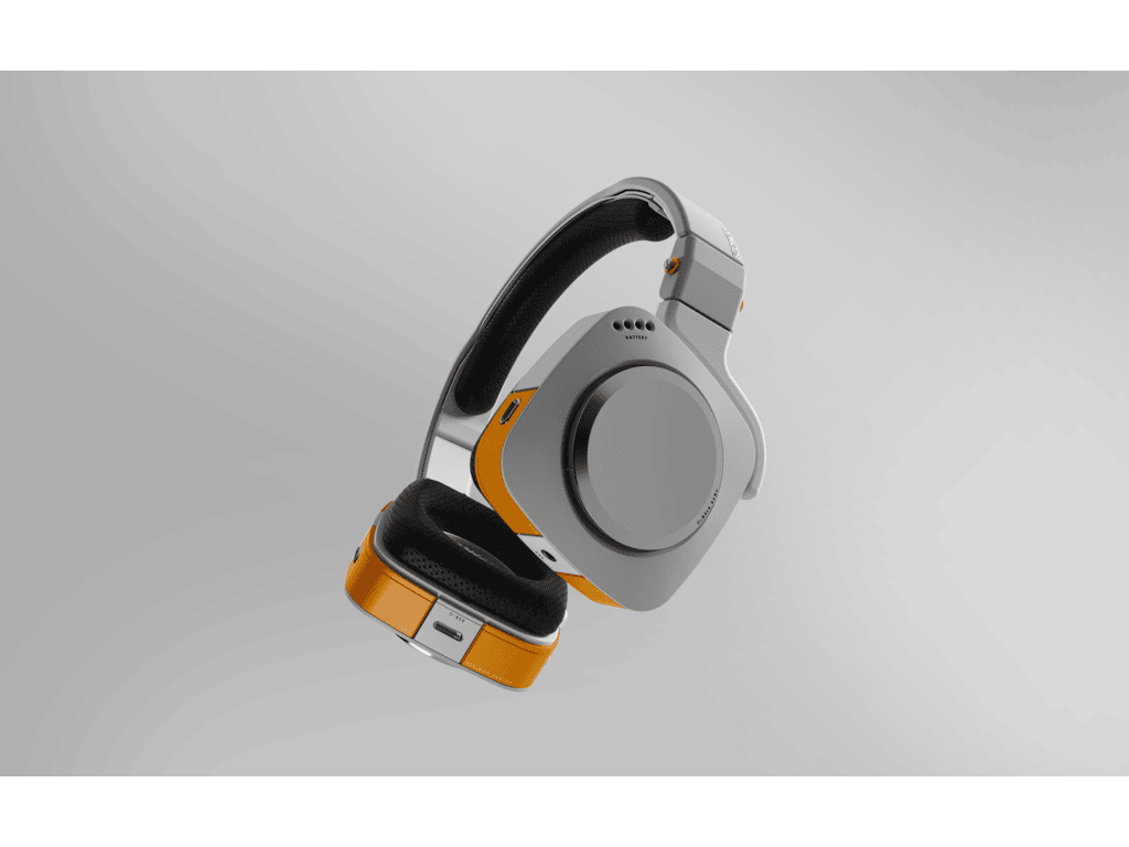 A hero-shot rendering of the Ecomod headphones with closed-back, on-ear and ANC modules attached.