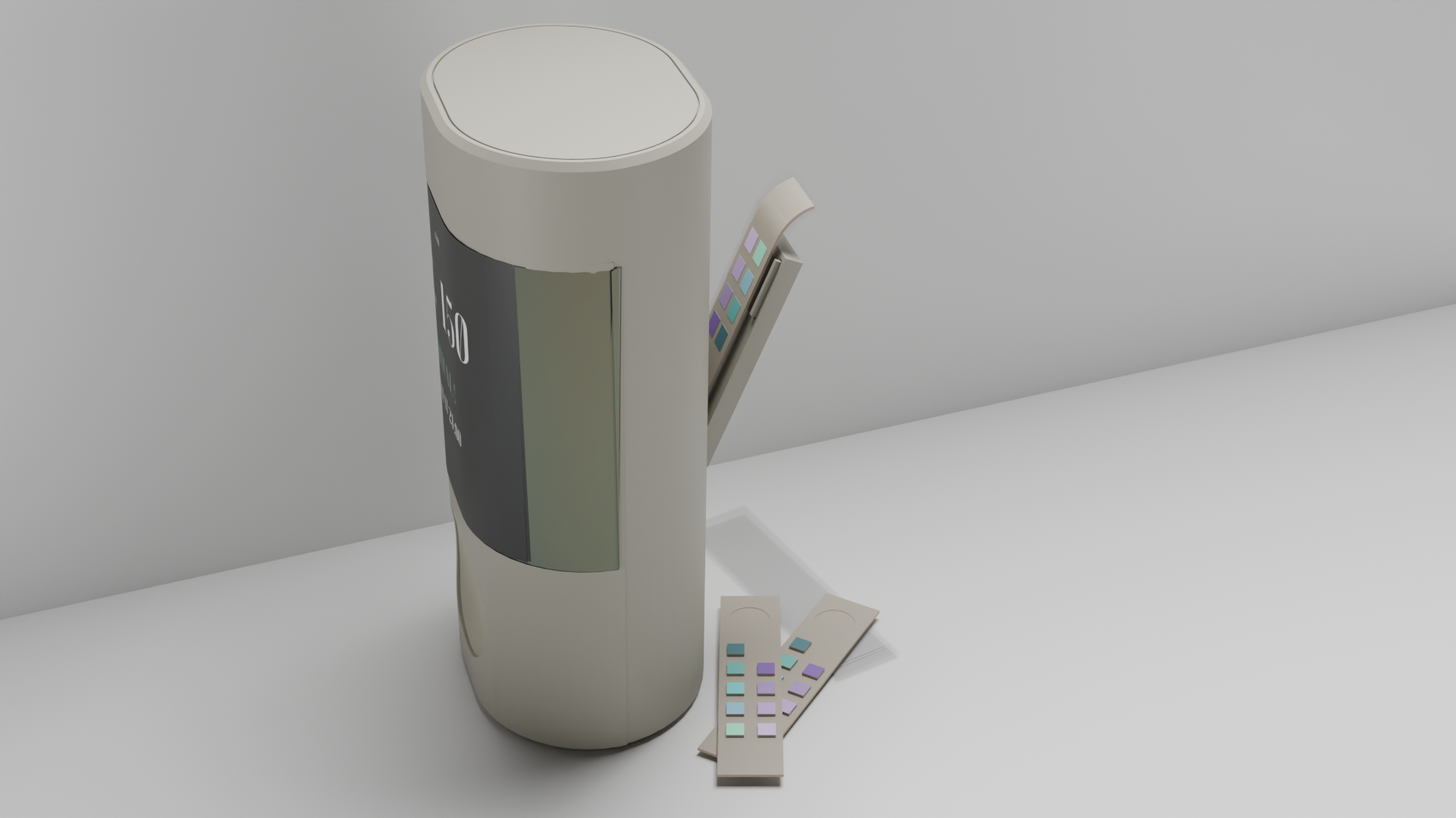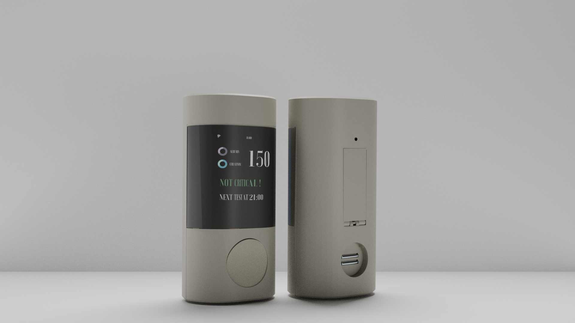 Ritual of use : After urine sample has been placed over the test pad, the ACR Test is then covered with medical grade capsule which creates a protection around the strip and ensures no contamination and is loaded at the back of NephroLink over the sensor.