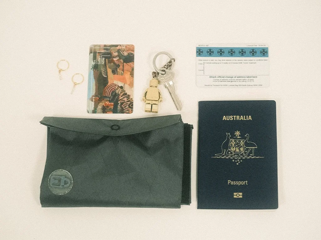 SAFE medium pouch with passport, identification, jewellery and a key.