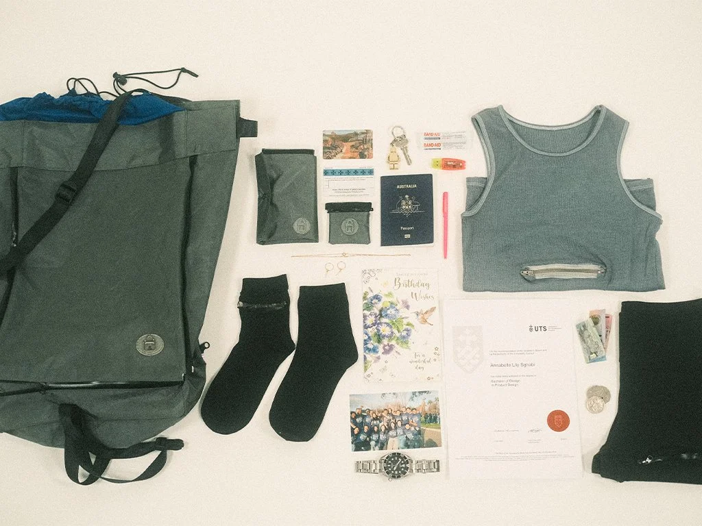 Secure Apparel For Essentials- Designed for refugees and young displaced individuals, ‘SAFE’ is a range of apparel and accessories to house personal belongings and keep them secure on the body, improving a sense of ownership, well-being and cognitive dignity.