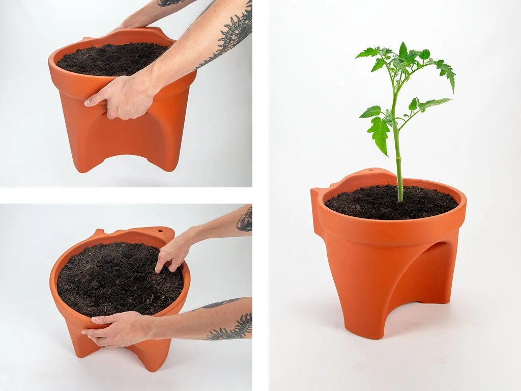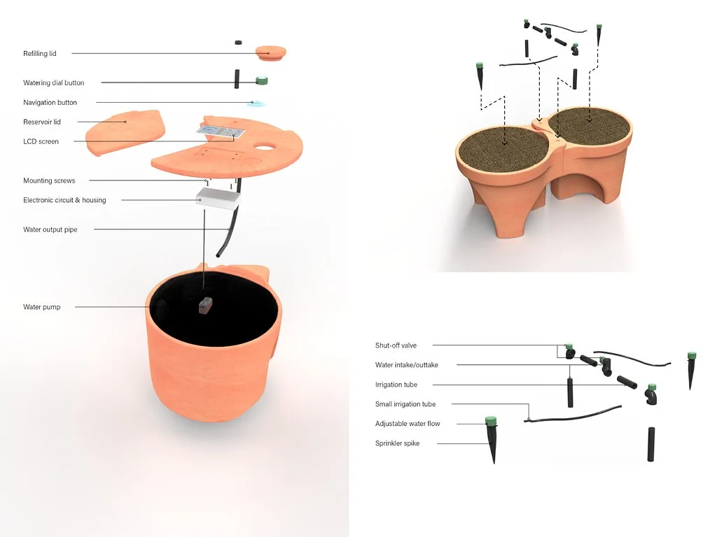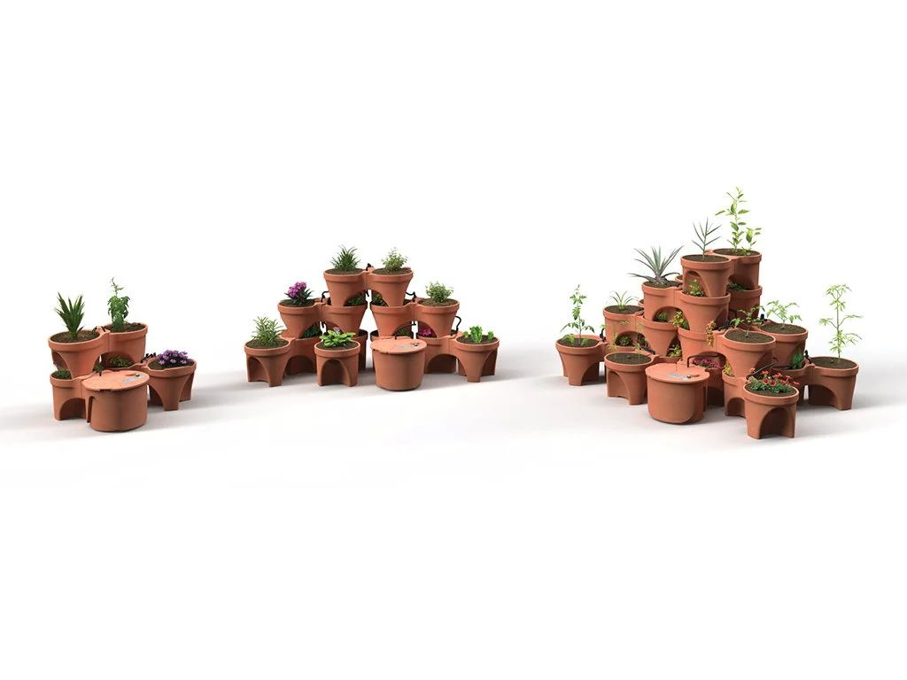 The planters and reservoir are designed to be slip cast out of locally sourced terracotta using minimal moulding parts for simplified and localised manufacturing