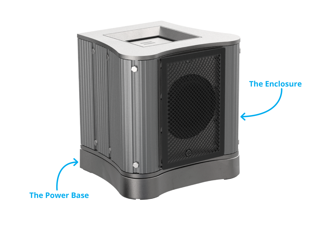 Alumax consists of two main components: The Enclosure + The Power Base