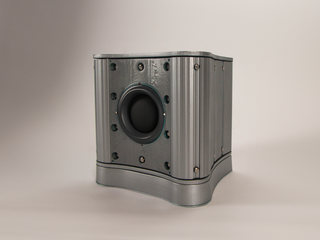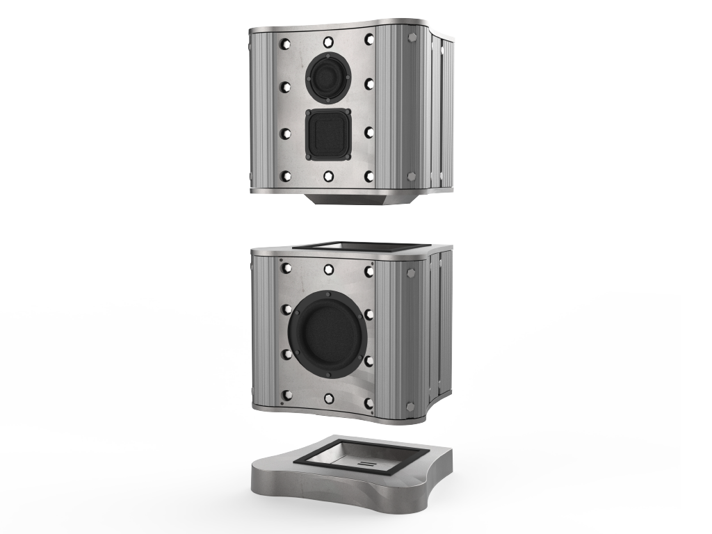 The final speaker enclosure design highlights the use of aluminium—a sustainable, durable material with a strong recycling infrastructure and established demand. It offers a cost-effective and scalable solution by employing metalworking processes suitable for mass production. The proposed design represents an evolving concept open to further refinement and collaboration with manufacturers to optimise functionality and sustainability.