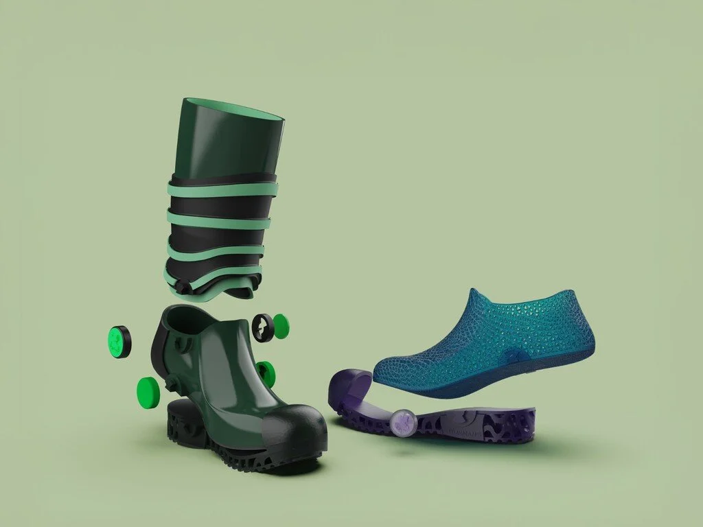 The design is built on a system of interchangeable components. Soles can be swapped to suit different activities, offering enhanced grip for outdoor terrain or added comfort for everyday wear, while the upper sections upgrade in size as the child develops. This modularity also enables three distinct wear configurations: a breathable summer boot, a full-height gumboot for wet and muddy conditions, and a low-cut version for casual use. Transitions between configurations are managed through a swappable lock mechanism, keeping the system intuitive for both children and parents.
