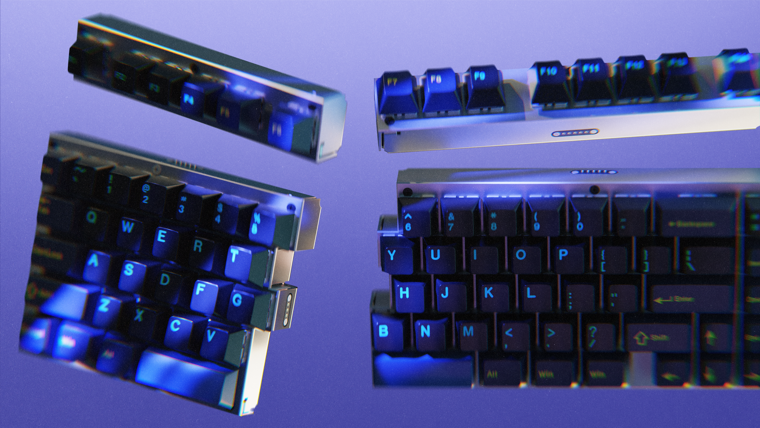 At its core, the design prioritises modularity as a means of extending product lifespan. Individual components are designed to be easily removed, replaced, or upgraded without specialised tools, reducing the need for full device replacement. This approach directly responds to the issue of planned obsolescence by allowing the product to remain relevant over time, both functionally and aesthetically. The system supports a range of interchangeable modules, enabling users to tailor the keyboard to their specific needs, whether for productivity, creative work, or personal preference.