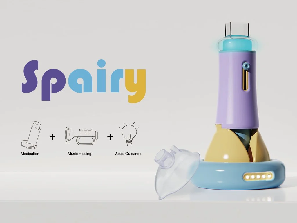 Spairy is an interactive toy designed for children with asthma, with adjustable buttons that change the tone to motivate the child to take their medication. At the same time, two movable blades in the shape of lungs guide correct inhalation and exhalation. Built-in spacer allows medication to enter the airway evenly, and improves the inhalation of medication in children.