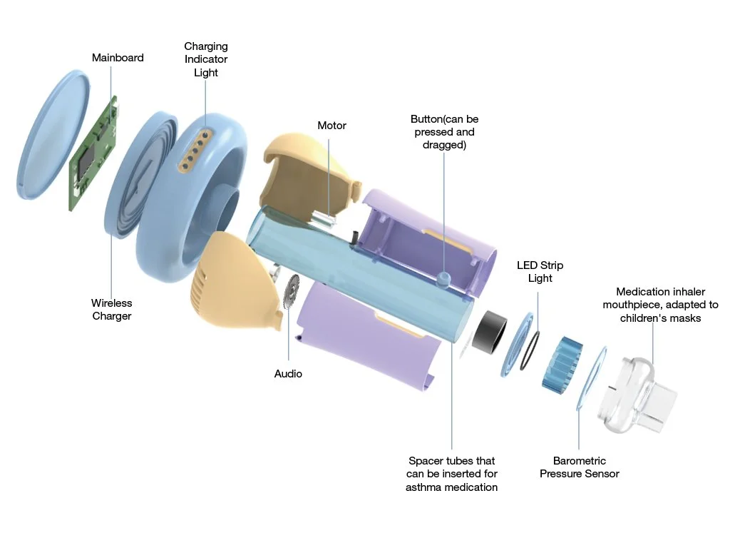 It is not only visually appealing to children, but also integrates auditory and visual feedback systems. through music and light cues. Enables children to receive proper inhalation instructions in a variety of ways through the toy. Through gamification, it enables children to participate more actively in asthma management.