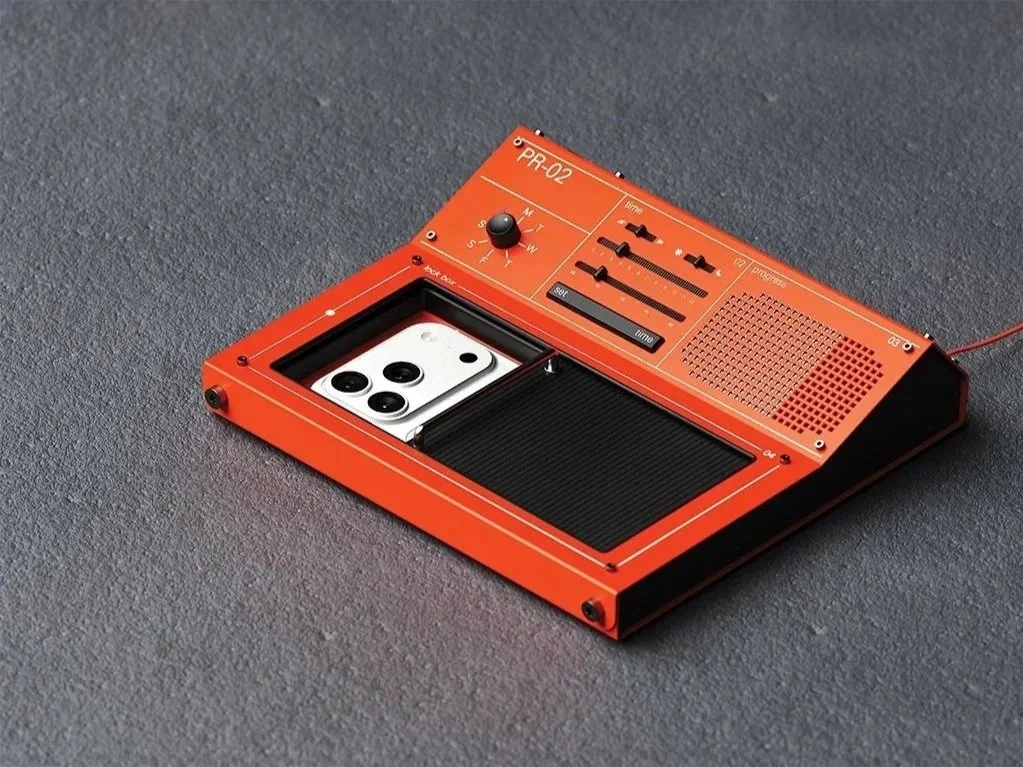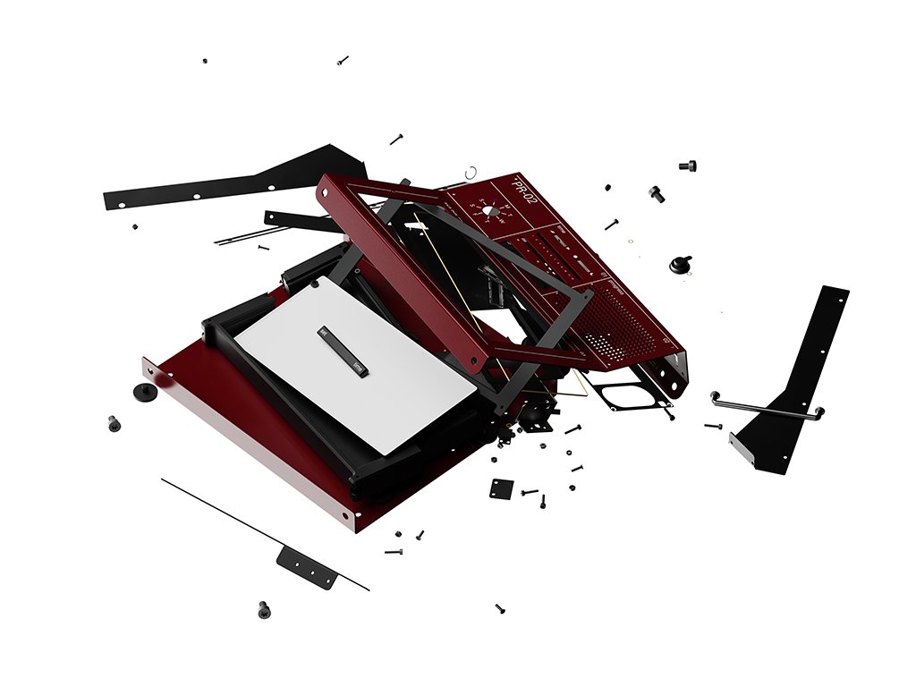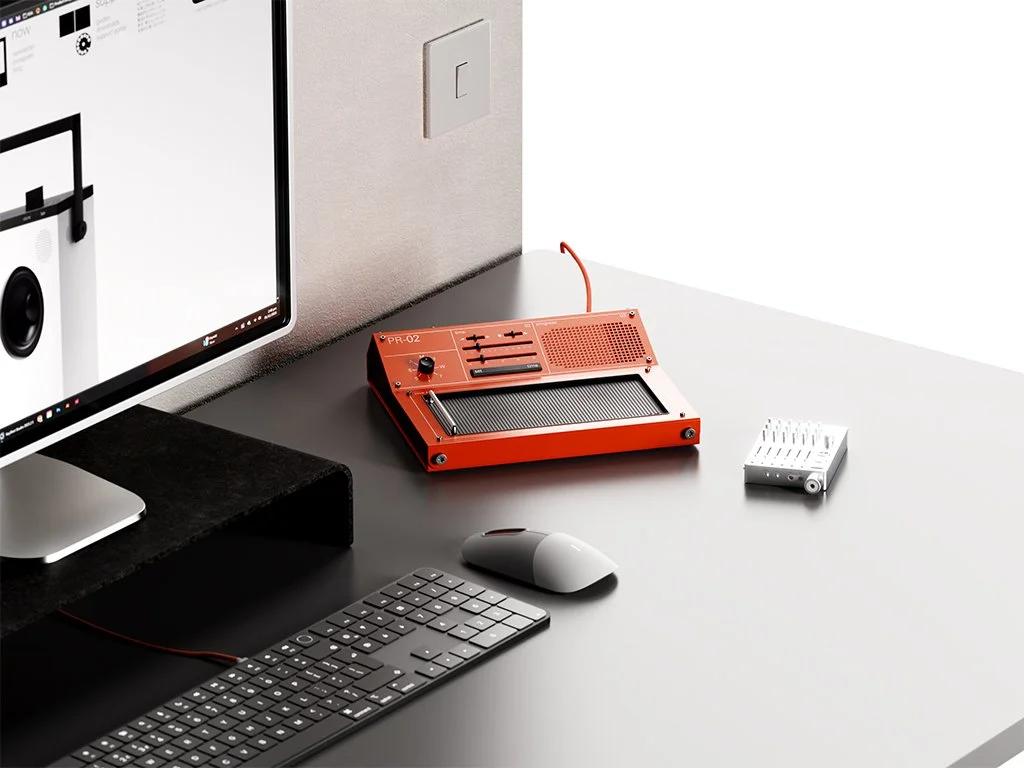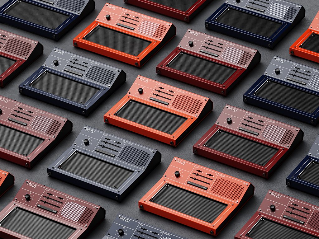 Designed with the ethos of Teenage Engineering in mind, the PR-02 features a bold CMF with RAL-indexed colours and silk-screened graphics. The construction of the PR-02 is primarily a powder-coated sheet-metal aluminium case with a collection of injection-moulded components, designed with manufacturing in mind.